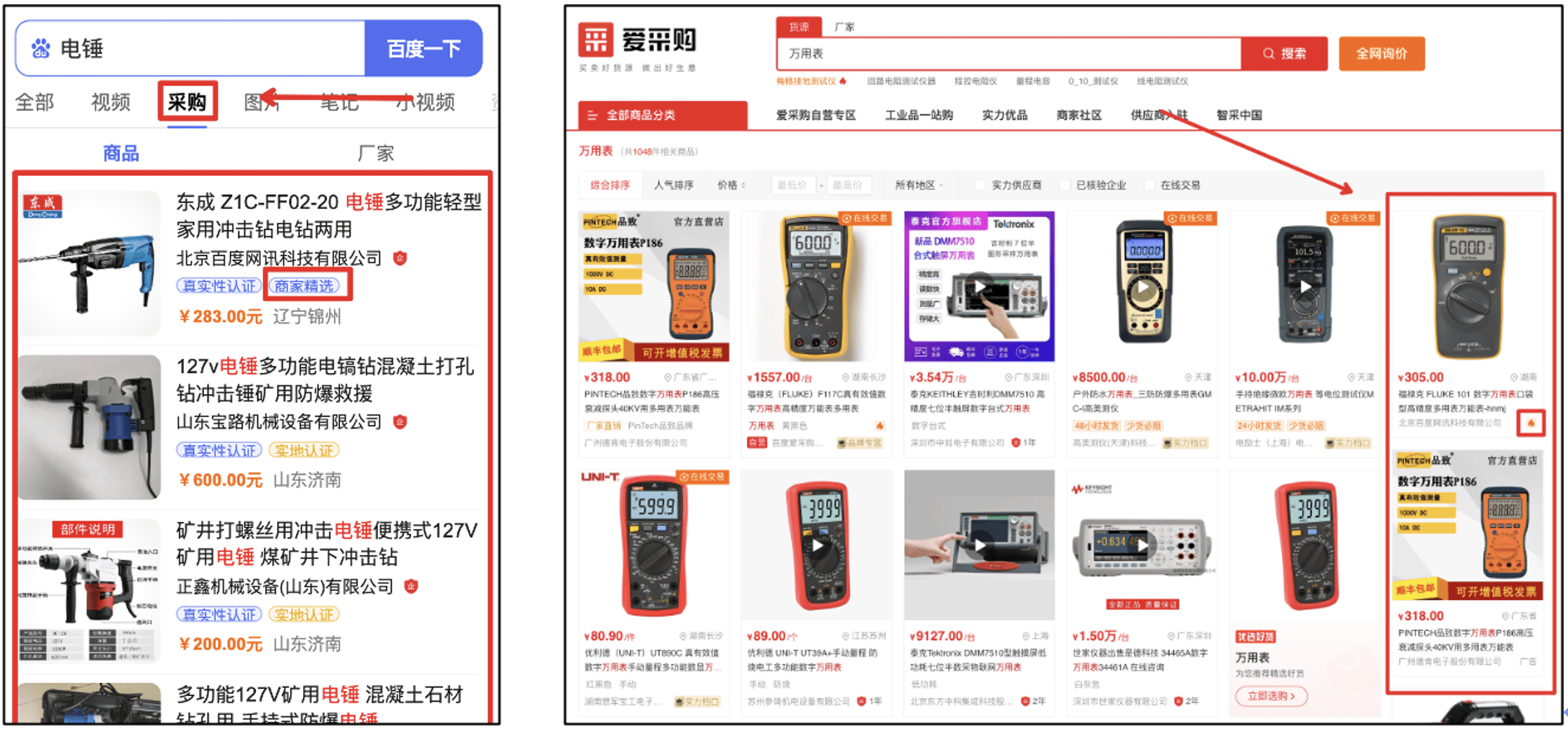 1、如何挑選營(yíng)銷商品? 建議選擇優(yōu)質(zhì)、非重復(fù)且同類商品少的商品,且加油包可營(yíng)銷10-100個(gè)商品,建議盡量選擇多元化的商品品類以及較多的商品數(shù)量。 2、加油包不同套餐權(quán)益 加油包不同套餐點(diǎn)擊量不同,且在商品質(zhì)量等其他條件一致的情況下,套餐價(jià)位高低對(duì)展現(xiàn)位置有一定影響。 3、購(gòu)買加油包后,我的商品會(huì)展現(xiàn)在哪里? 加油包營(yíng)銷商品在手機(jī)端百度搜索頁(yè)采購(gòu)頻道,電腦端愛(ài)采購(gòu)站內(nèi)商品列表頁(yè)常駐展示,且商品帶有“商家精選”或“小火苗”特殊標(biāo)識(shí),具體位置如圖所示: